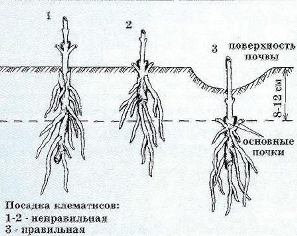 Při jarním výsadbě není otvor zakrytý na úroveň zahradní půdy, rostlina vytváří svěží keř.Na podzim je díra zcela zaplněna a mulčována.