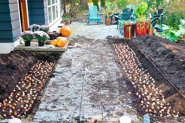 Začíná časově nejnáročnější proces - výsadba. Když si vyberete místo a správný čas, můžete se pustit do práce. Při výsadbě květin umístěte středně velké cibule o hloubce 15 centimetrů a velké cibule o hloubce 20 centimetrů.V tomto ohledu není důležitá extrémní přesnost.