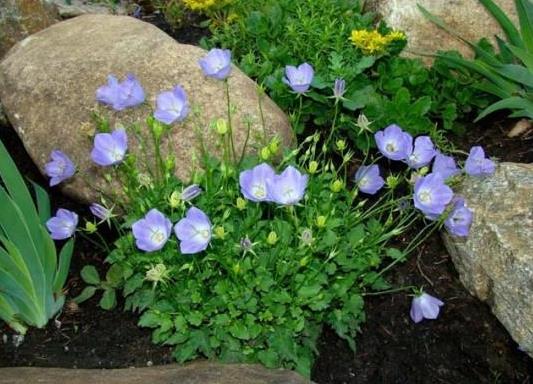 Fotografie ukazuje, kdo může karpatské zvony zasadit na záhon nebo použít v různých kompozicích: