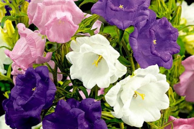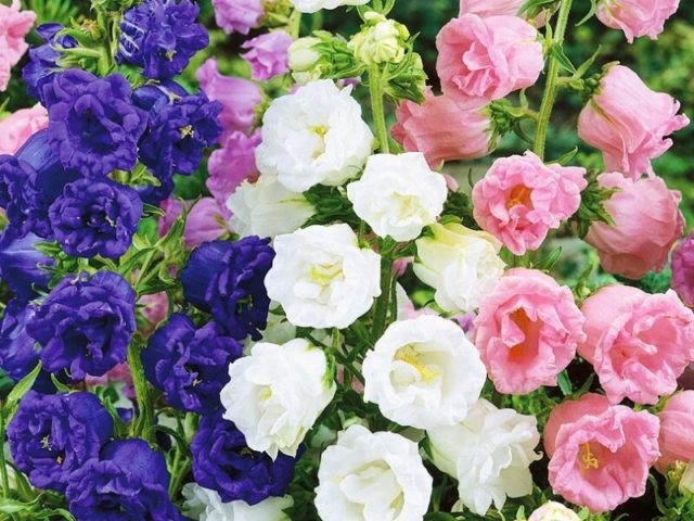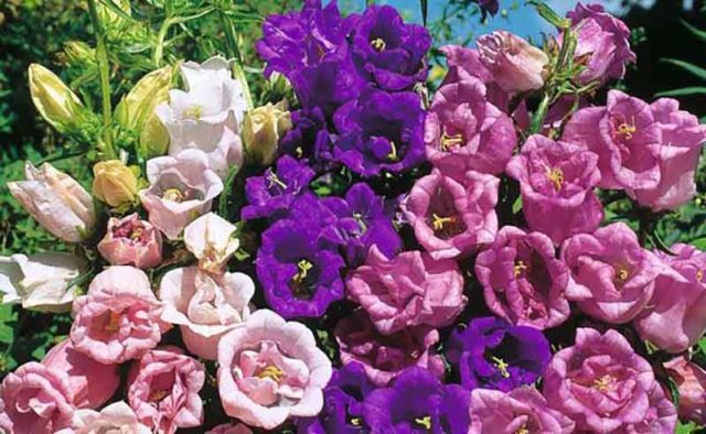 Další odrůdová směs se dodává v baleních se semeny různých barev.Zpravidla se jedná o froté odrůdy do výšky 1 m, které vstupují do dekorativního období od července do začátku podzimu. Stíny pupenů mohou být bílé, modré, růžové a fialové, pomocí středního froté zvonu, směsi barev, můžete vytvořit jasný vícebarevný záhon.