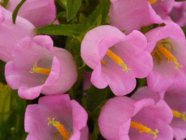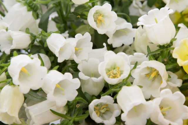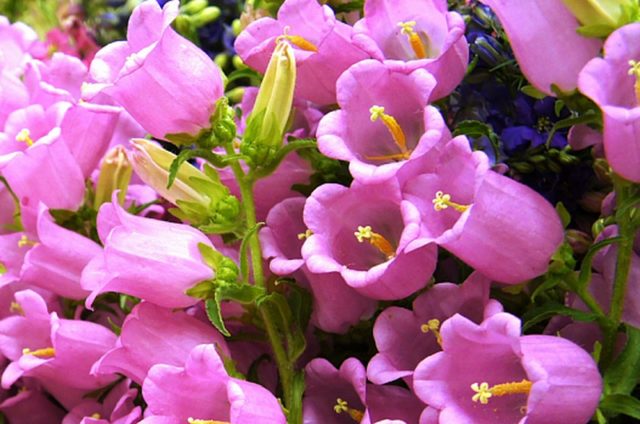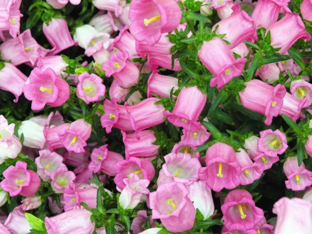 Od června do začátku září produkuje pupeny ve formě obrácených brýlí s okvětními lístky mírně zvlněnými na okrajích a zahnutými směrem ven. Podle typu mohou být květy středního zvonu pravidelné nebo dvojité, dosahují délky asi 7 cm a tvoří svěží květenství 45-50 kusů. Barevná škála je většinou studená a skládá se z bílé, modré, růžové, fialové a modré barvy. Ozdobné období obvykle trvá měsíc nebo déle a jeho nádhera je dána podmínkami pěstování, kultura poskytuje maximální počet květů na slunečných místech s mírnou vlhkostí.