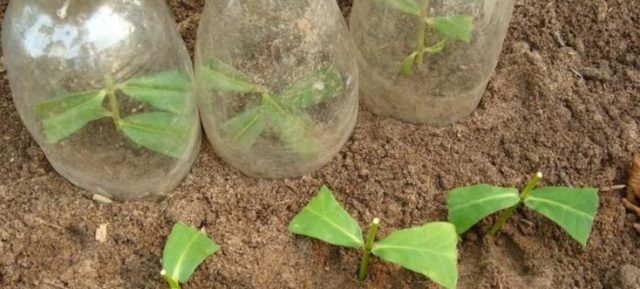 V otevřené půdě je prostřední zvon osázen semeny a řízky. V obou případech se postup provádí na konci května po stanovení konečného tepla.