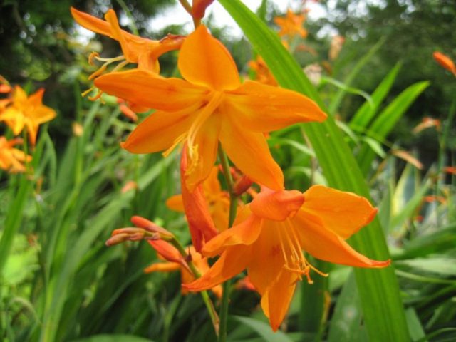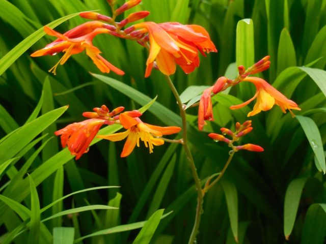 Časný druh, který začíná kvést v červnu. Navenek, jak je vidět na fotografii květů crocosmia, paniculata připomíná zbytek druhu: oranžové květy, dlouhé zelené listy.