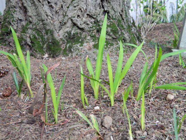 Cibule Crocosmia jsou zasazeny podobným způsobem a zakopávají je do země o 5-7 cm.Před výsadbou hlíz se doporučuje namočit po dobu 2 hodin v roztoku slabého manganistanu draselného.