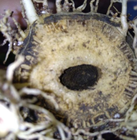 - Šedá hniloba... Toto onemocnění lze určit podle vzhledu načechraného šedého povlaku na částech rostliny. V procesu léčby jsou postižené fragmenty odstraněny a zdravé jsou ošetřeny roztokem manganistanu draselného, aby se zabránilo šíření infekce.