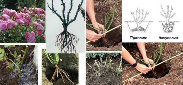 - Příprava půdy a sazenicea. Pokud je místo pro jarní výsadbu odrůdy stanoveno předem, měla by být příprava půdy zahájena na podzim. Budete muset oplodnit půdu (30 kg organické hmoty na 1 m2) a vykopat ji. Na jaře by měla být půda očištěna od plevele, trosek, velkých hroud. Vykopejte otvor o 50 cm a stejné hloubce. Na dno položte vrstvu kompostu a humusu, poté vrstvu zahradní půdy. Navlhčete vodou. Vzdálenost mezi jámami není menší než 50 cm. Dlouhé kořeny sazenice růží nakrájejte na délku 20 cm, na den je položte do kořenotvorného roztoku.