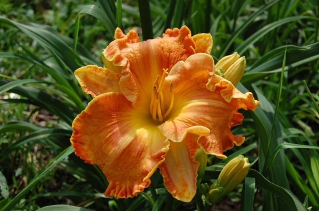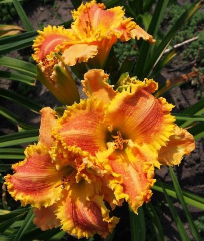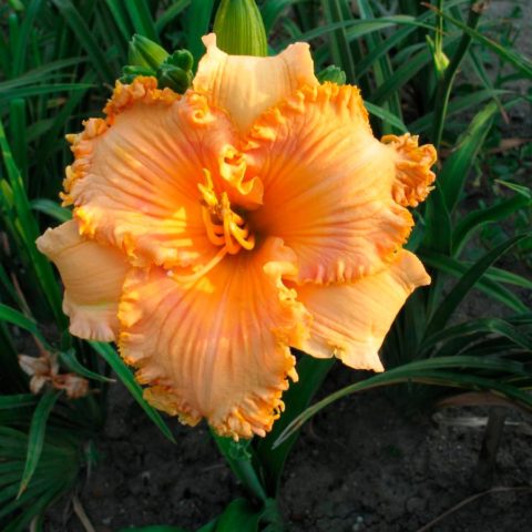 Jedná se o denivka s růžovo-oranžovými květy, jejichž průměr je 15 cm. Pupeny jsou pravidelné, zvlněné a mají poměrně hustou strukturu. Na okrajích okvětních lístků je sotva znatelný zelený odstín. U odrůd s oranžovou barvou je to velmi vzácné. Výška stopek je 65 cm.
