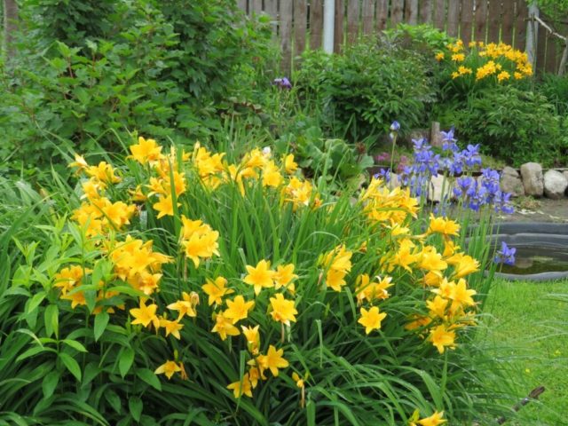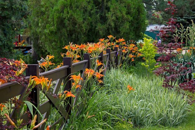 Někteří pěstitelé vysazují pouze denní lilie a někteří je kombinují s jinými okrasnými rostlinami, v každém případě to vypadá harmonicky