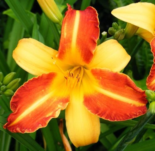 Žlutooranžová barva je pro daylily klasická. Chovatelům, kteří tuto odrůdu vytvořili, se však podařilo dosáhnout neobvyklé kombinace odstínů. Rozpouštění, korunky denní rostliny ohromují jasem širokých oranžových lístků se žlutou čárou uprostřed. Krk koruny je citronově zelený a trojice úzkých okvětních lístků žlutá. Průměr květů je malý a je pouze 12 cm, výška stopek dosahuje 1 m.