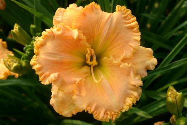 Odrůda má velmi velké květy až do průměru 20 cm, přechody odstínů jsou co nejplynulejší od zeleného hrdla po bledě oranžový základní odstín okvětních lístků. Okraje jsou zvlněné a mají nažloutlý okraj. Vzhledem k husté struktuře se pupeny zdají být těžké. Stopky jsou rozvětvené, 75 cm dlouhé.