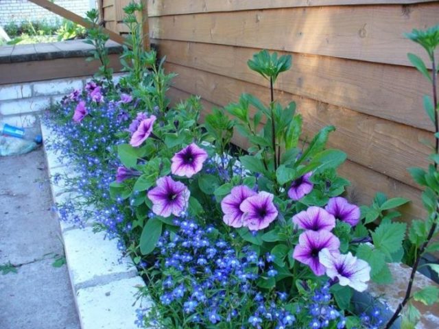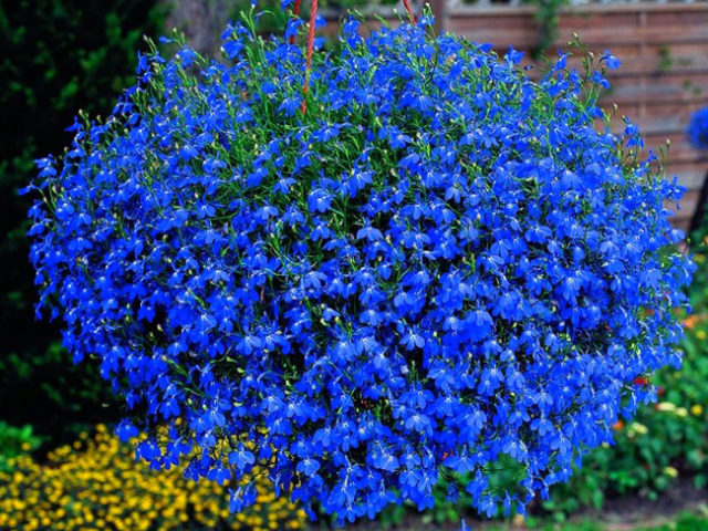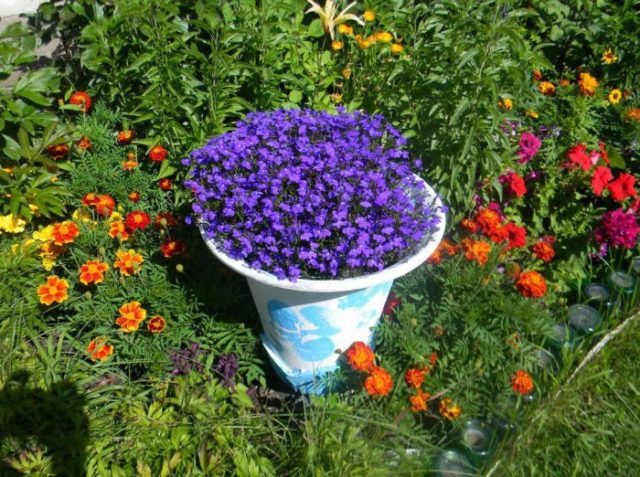 Lobelia vyhrává díky své skromné a vzácné barvě. Téměř všechny květy jasných odstínů - červená, oranžová a žlutá - vypadají skvěle na pozadí. Dokonce i lila nebo modrá jsou v souladu s lobelií.