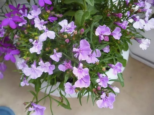 Majitel růžových a modrých květů. Kvete za 3,5 měsíce po klíčení. První vlna končí začátkem září. Po odříznutí výhonků do výšky 5–7 cm od země a následném krmení nastává druhá vlna. V tomto případě odrůda keřů lobelie Riviera Lilac kvete až do mrazu.