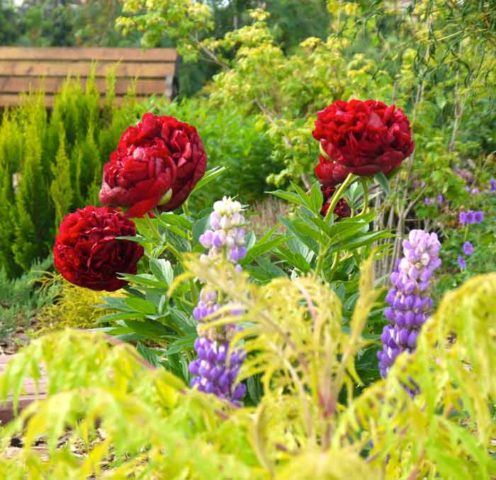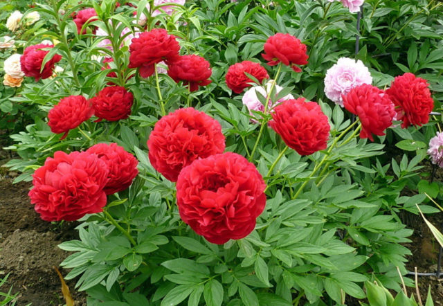 - zasazeno v kombinaci s různými odrůdami pivoněk k rámu záhonů;