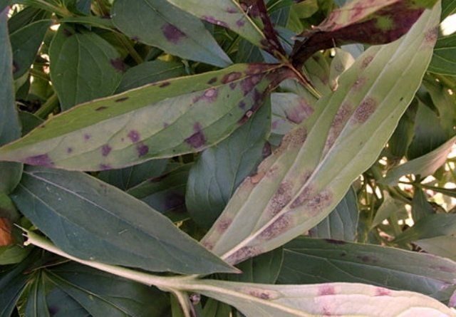 Nejnebezpečnější chorobou je šedá hniloba. Ovlivňuje nejen listy, ale i pupeny, stejně jako stonek pivoňky červené magie. Pokud na jaře začaly vadnout mladé výhonky, kolem stonku se objevil šedý květ nebo nahnědlé skvrny, je třeba okamžitě jednat.