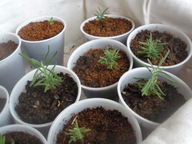 Klíčky je nutné přesazovat velmi opatrně, nejlépe v jednotlivých květináčích nebo plastových kelímcích, ale povoleny jsou i velké boxy. Pokud sběr probíhá v jedné nádobě, měla by být vzdálenost mezi sazenicemi nejméně 6 cm. Varování! Je nutné přemístit levandulový výhonek na jiné místo, aniž byste zničili hrudu Země a dobře rozdrobili půdu kolem ní.