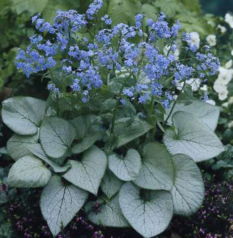 Spolu s jednoduchými výsadbami se Brunner používá v zahradním designu v kombinaci s různými rostlinami. Sousedi na květinových záhonech mohou být: