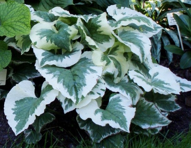 - Variegata - Další zajímavý brunet velkolistý s tmavě zelenými listy, po jehož okrajích vidíte bledě žlutý okraj.Rostlina se vyznačuje dobrou zimní odolností, vydrží i silné mrazy až do -40 ° C, což umožňuje vysazovat keře na Sibiři a Urale.