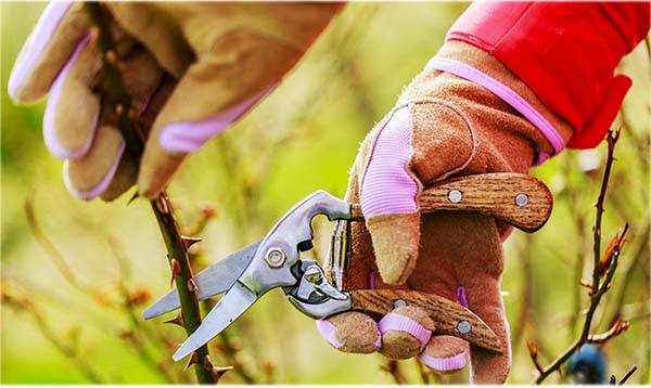 Odrůdy keřů musí být zcela odříznuty, přičemž ponechávají pouze spodní části výhonků, ale ty horolezecké se stříhají pouze za účelem vytvoření keře a odstranění poškozených výhonků. Může být obtížné okamžitě ohnout keř na zem. Zahradníci často musí tento postup provést v několika fázích. To musí být provedeno opatrně, aby nedošlo k zlomení mladých výhonků.