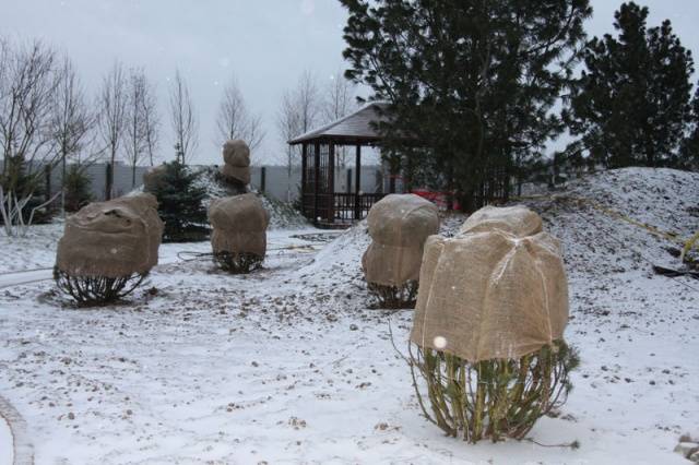 Je velmi důležité, aby pouzdro nebylo úplně přitlačeno k zemi, měl by tam být nějaký prostor pro vzduch. Poté můžete rostliny zpracovat síranem železitým. Chráníte tak rostliny před mnoha chorobami. Když přijdou mrazy, jsou keře pokryty ve 2 vrstvách lutraxilem-60.