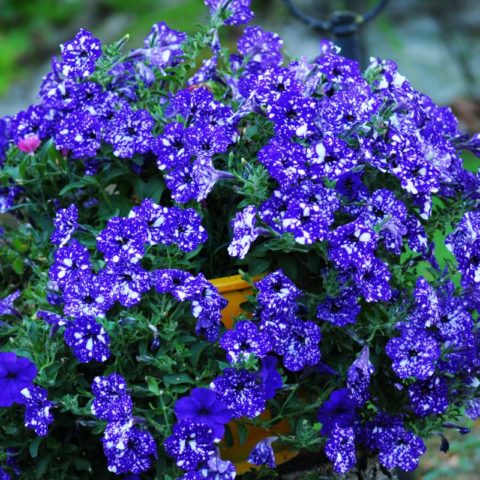 Vegetativní petunie Hvězdná obloha je hybridní odrůda bylinných a keřových trvalek. Patří do čeledi Solanaceae, může dorůst až 1 m. Kultura se dobře rozvětvuje, roste jako malý keř. Je zaznamenáno časné kvetení a schopnost trvalé tvorby pupenů. Proto je pučící dlouhé, nepřetržité, po dobu 2-3 měsíců.