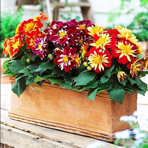 Krásné květiny - jiřiny, lze úspěšně pěstovat nejen v květinové zahradě, ale také v květináčích. K tomu jsou vybrány odrůdy, které mají malý kořenový systém. Vhodné pro pěstování kontejnerů obrubník, miniaturní, pot-dahlias.