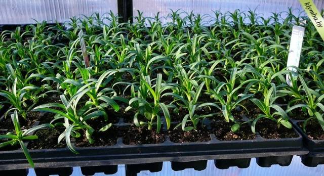 Pro sazenice alpských karafiátů jsou připraveny boxy nebo samostatné nádoby. Je vhodné používat kazety o velikosti ok 3 až 5 cm.Pak můžete udělat bez sbírání sazenic.