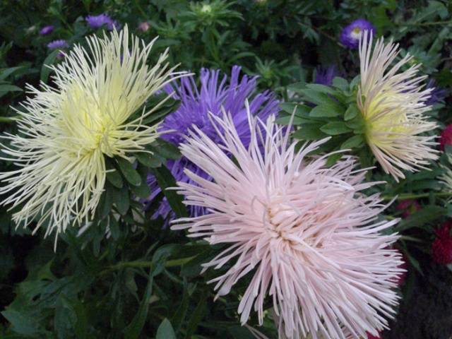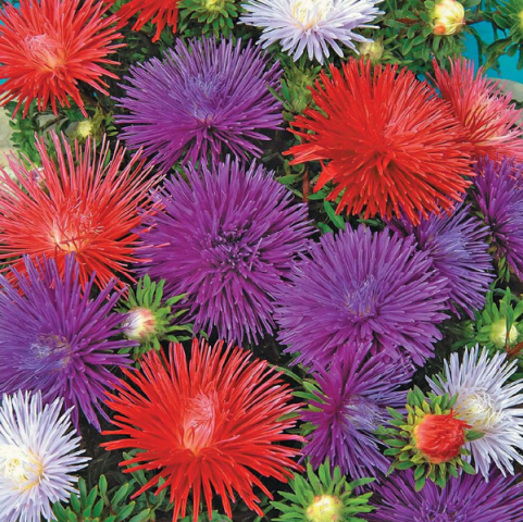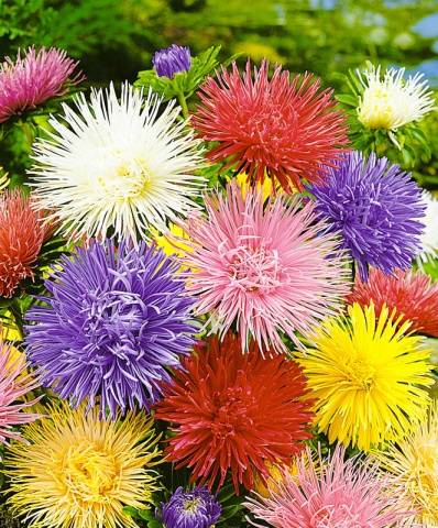 Barevná škála jehelních asterů je rozsáhlá a zahrnuje následující odstíny:
