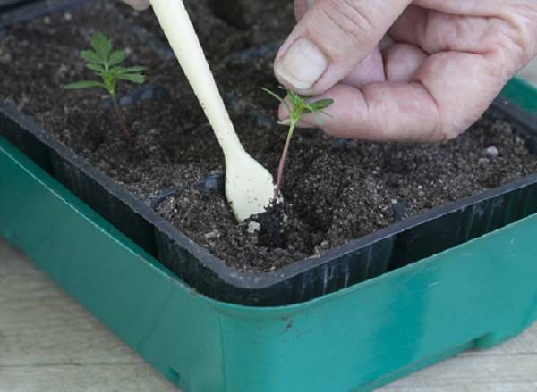 Při zasazování semen na záhony je posypte vrstvou lehké zeminy o tloušťce asi 1 cm. Pokud jsou semena posypána příliš silně, klíčky nemusí prorazit půdu a pokud je vrstva tenká, sazenice mohou jednoduše zaschnout ven. Proto v prvních týdnech po setí kontrolujte vlhkost půdy každý den. Ve venkovních podmínkách se sazenice obvykle objevují 7. až 8. den. Po týdnu je lze ředit a zanechat nejsilnější a nejzdravější rostliny.