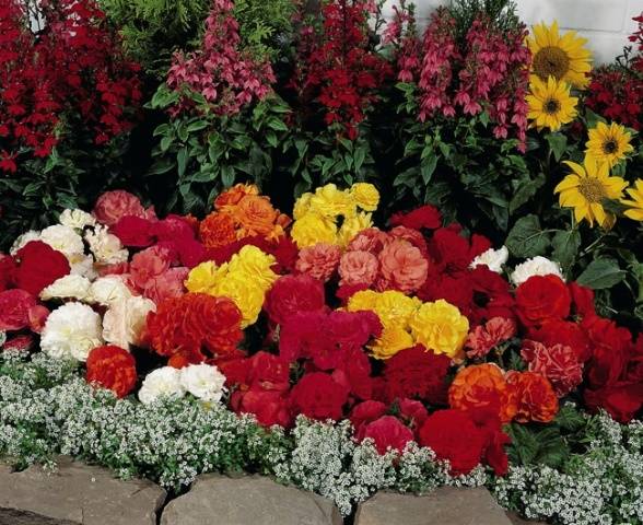 Krásné a jemné begónie s velkými dvojitými květy jsou široce používány v krajinářském designu.