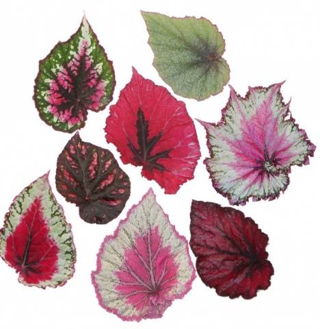 Pod ním jsou listy Begonia načervenalé, hnědé nebo dokonce tmavě fialové. Horní povrch listové desky může být zelený nebo může mít jinou barvu. Kromě toho existují listy s geometrickým vzorem, tahy, postříkání. To je jasně vidět na fotografii.
