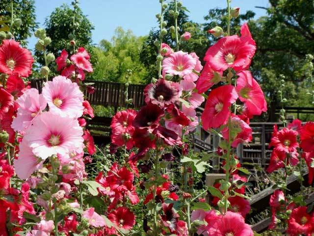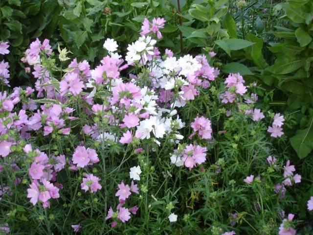 - Pižmo nebo muškátový oříšek (Málva móschata)... Nízká - až 80 cm trvalka, pěstovaná jako bienále. Kvete v druhém roce po zasetí velmi bohatými bílými nebo růžovými voňavými květy o průměru asi 3 cm. Je nenáročný, může růst v částečném stínu, dobře se rozmnožuje samojevem.