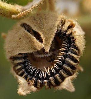 Semenné tobolky jsou ploché, zaoblené, vytvořené v prohloubení sepals, jejich barva je šedavě hnědá. Takto vypadají semena slézu na fotografii.