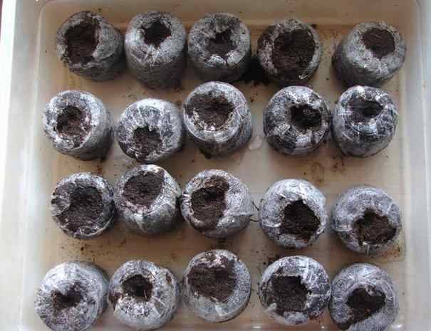 - výsadba v rašelinových tabletách;