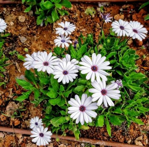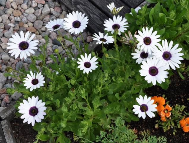 Nyní můžete začít s přesazováním Dimorfoteky do otevřeného terénu. Optimální vzdálenost mezi jamkami pro výsadbu by měla být alespoň 15–20 cm, sedmikrásky mysu dobře rostou.