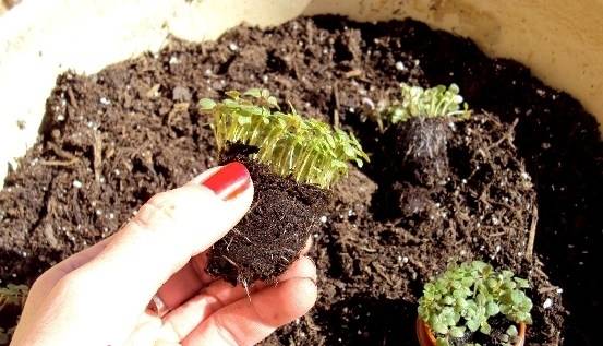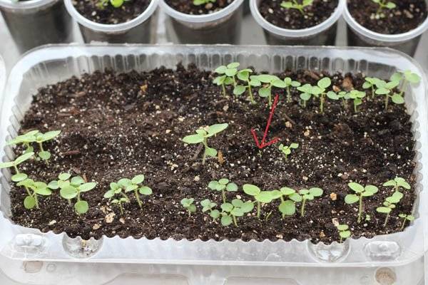 Pokud zmeškáte okamžik klíčení semen a sazenice mají čas se trochu natáhnout a zakrýt se zelenými listy, pak není vše ztraceno. Musí být také pokryty zemí, ale již ji rozptylují shora, přímo přes síto. To musí být provedeno velmi opatrně, aby nedošlo k poškození tenkých klíčků. Poté jsou všechny sazenice také opatrně nastříkány vodou z rozprašovací lahve.
