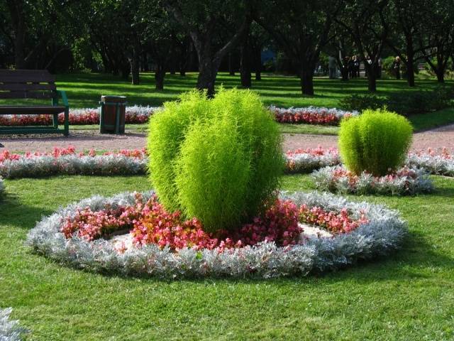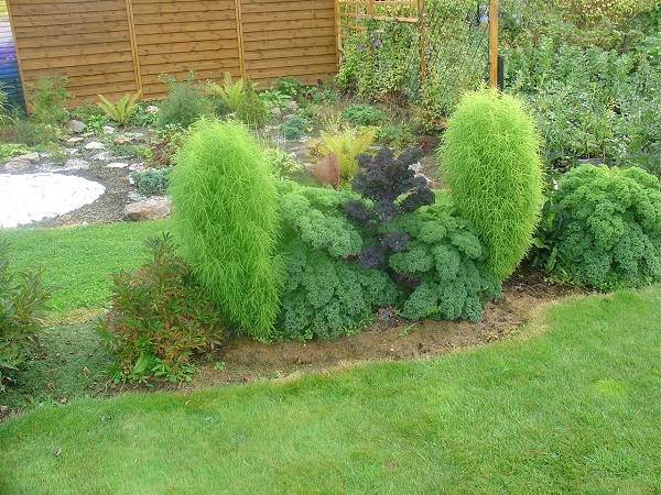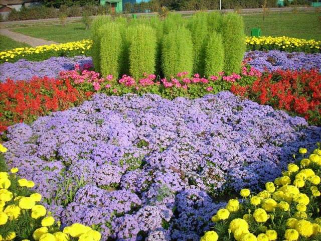 Podívejte se na fotografii, jak se Kochia perfektně kombinuje s jinými zahradními květinami a rostlinami: