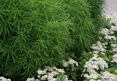 Cochia se hodí k mnoha květinám: astry, růže, měsíčky, měsíčky, gatzania, ageratum, pavonia, calceolaria.