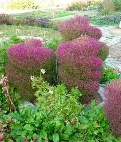 Pro dosažení určitého tvaru je třeba pravidelně řezat keře Cochia. Korunu budete muset vytvořit každé 2-3 týdny. Díky tomuto jednoduchému postupu můžete těmto křovím dát různé tvary a realizovat i ty nejdivočejší fantazie. Po prořezání zelená hmota roste velmi rychle. Po oříznutí je třeba rostliny neplánovaně krmit hnojivy na bázi dusíku.