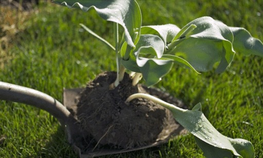 Nejvhodnější je přesadit již zakořeněné tulipány na jaře a přenést je na jiné místo spolu s velkou hroudou zeminy na kořenech