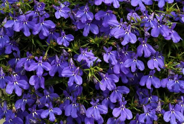Květy jsou malé, bílé, sytě fialové nebo v různých odstínech modré, od jasně modré po fialovou.