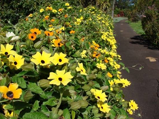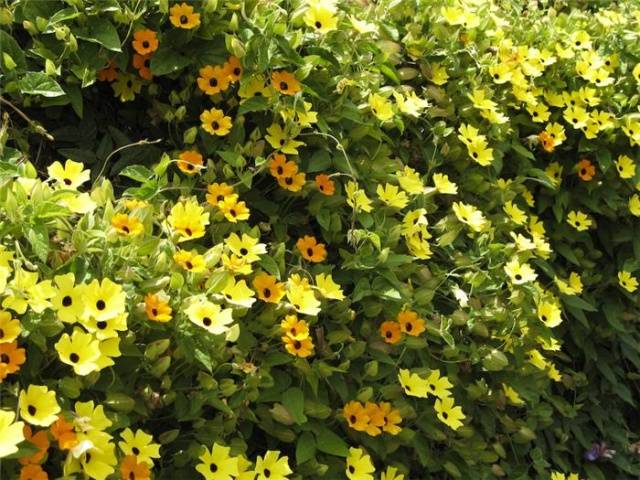 Thunbergia v kombinaci s ostatními kudrnaté ročníky, může dokonale oživit zahradní altán nebo sloužit k vytvoření zeleně kvetoucí stěny, která oddělí útulný koutek pro relaxaci na vašem webu.