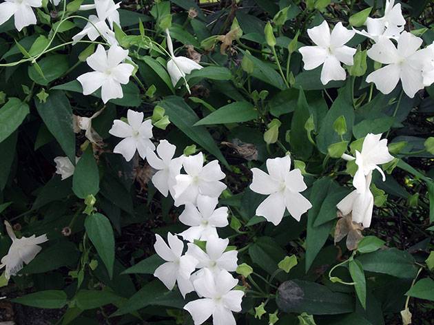Tato květina pochází z jihovýchodní Asie a Austrálie. Je to vždyzelená liana, která dorůstá až 6 metrů. Listy jsou vejčité, nahoře tmavě zelené a uprostřed dole bílé žíly. Jednotlivé bílé květy do průměru 5 cm mají příjemnou vůni.