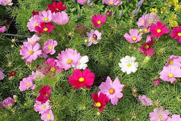Mnozí si pravděpodobně pamatují z dětství ty staré odrůdy kosmu, které na vysokých stoncích zdobily malé okouzlující květiny s jemnými okvětními lístky připomínajícími křídla elfů. K dnešnímu dni bylo vyšlechtěno mnoho odrůd, včetně podměrečných, s výškou ne více než 30-35 cm, stejně jako s velkými květy dosahujícími průměru 12-15 cm. Kromě obvyklých kosmických květenství, dvojitých a polodvojitých objevily se odrůdy i odrůdy neobvyklého tvaru, které narůstají ve formě jedné misky nebo ve formě samostatných trubek. Proto dnes, více než kdy jindy, jde jeho jméno kosmické, což je z řečtiny přeloženo jako „krásné“.