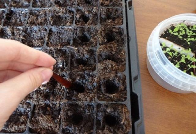 Kontejnery s víkem fungují dobře jako nádoby na osivo. Působí jako krycí materiál v prvních dnech po setí a vytvářejí optimální parametry teploty a vlhkosti pro semena. Pokud to není možné, vezměte si jakýkoli výsadbový kontejner - květináče, kazety, krabice. Ve spodní části vytvoříme otvor pro provzdušnění půdy a odtok přebytečné vlhkosti, aby nedošlo ke stagnaci vody. Nadměrné zvlhčení semen pravděpodobně povede k rozpadu než k pozitivním výsledkům.