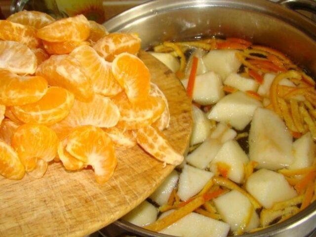 - Odstraňte kůru z mandarinek a citronu, rozdělte je na klíny.