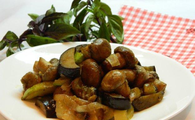 Žampiony s lilkem a cuketou