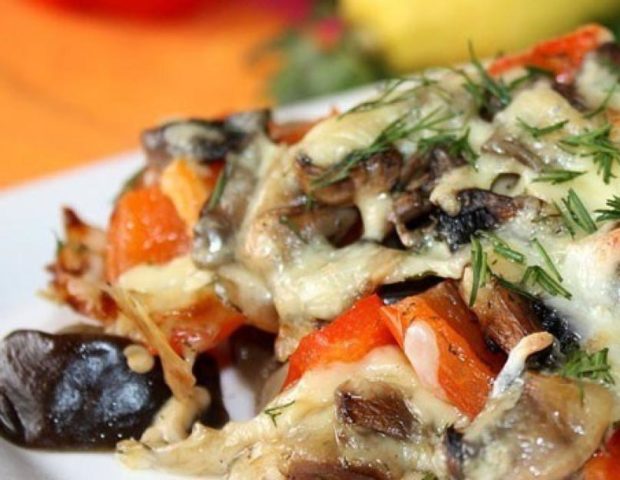 Jak udělat lilek s houbami v troubě