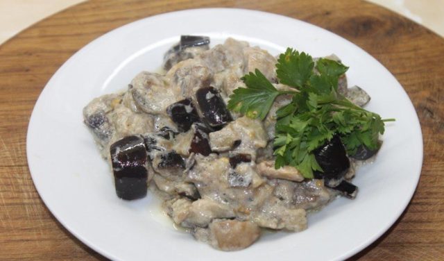 Lilek se žampiony ve zakysané smetaně