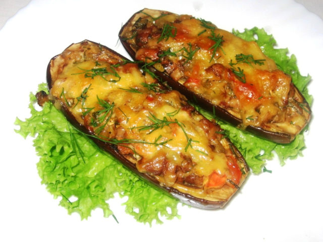- Náplň je rozložena do pečených člunů a vložena zpět do trouby. Je třeba je vařit 10 minut při teplotě 200 ° C.