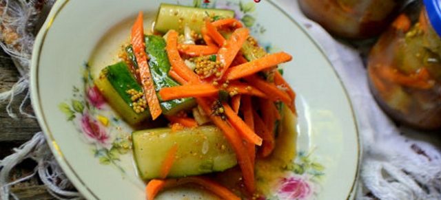 Mnoho lidí miluje chuť korejských salátů, ale neví, že mohou být na zimu zazátkovány. S přidáním feferonky a hořčice se přípravek ukáže být kořeněný a aromatický.